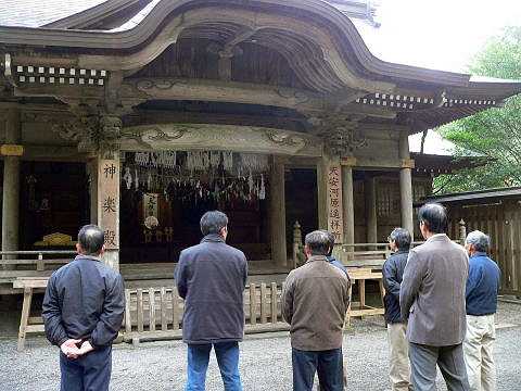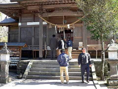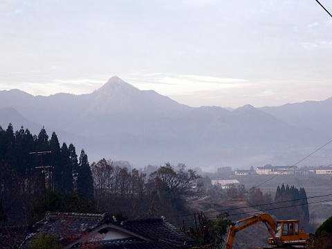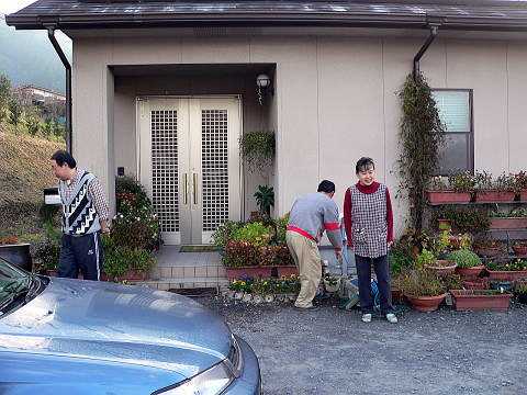 | 右上写真の望遠。今朝は雲海は無かった。 | 女将さん夫婦と弟さん。お見送り。アップで撮りたいけど肖像権が・・。お世話に成りました。宿の中やお料理の写真がいっぱい有りますが許可をもらってません。ここにはまた来るでしょう。 |