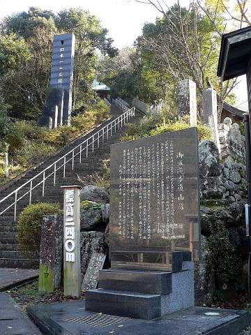 | 登り口。見ただけで登りたくない。3333段。頂上の展望台では雲仙普賢岳が見えるそうだ。私は写真で見させて頂いた。 |