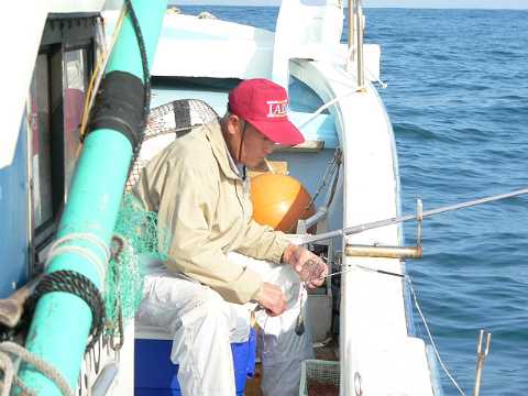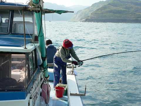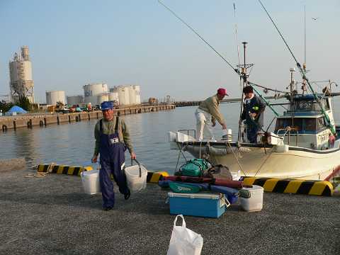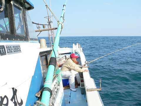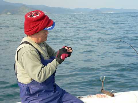 | 私の師匠と釣り好きのおじ様?方と釣りに行った。朝4時に起きて支度をしていそいそと出かけた。 漁港は内海、船はあや丸。私はサビキでアジ釣り一本。3人は天秤で鯛釣りとアジねらい。今日は、潮の流れと風向きが合わず船が固定出来なかった。海は静かでベタ。さて本日の成果は?。 |