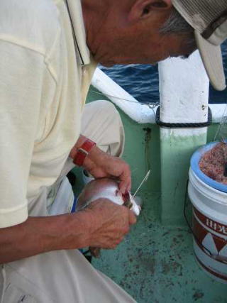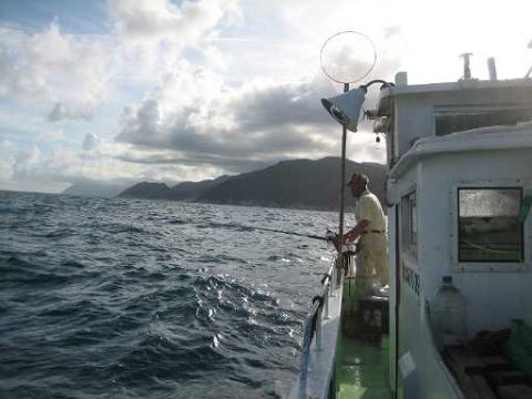 一年ぶりの魚釣り。今回は鹿児島県の内之浦、夜釣りではあったがお昼前に出発。弁当・氷・餌などを買い揃え、串間の福島港から出航。内之浦、ロケット発射台が見えるポイントへ・・・・。明るいうちはタイ・アジ釣り、暗くなったらイカ釣りの予定。