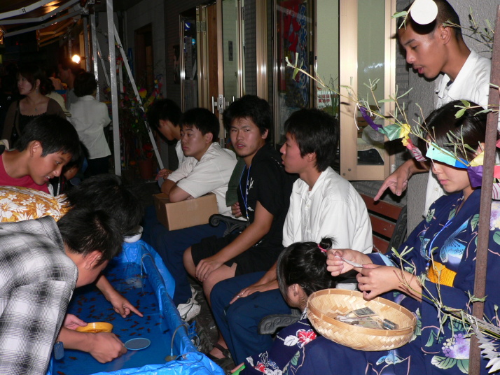商業高校の金魚すくい。暗くなって照明が欲しかった。