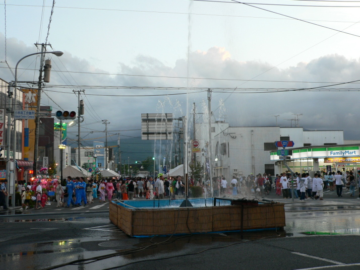 江南の前の交差点に作られた噴水。