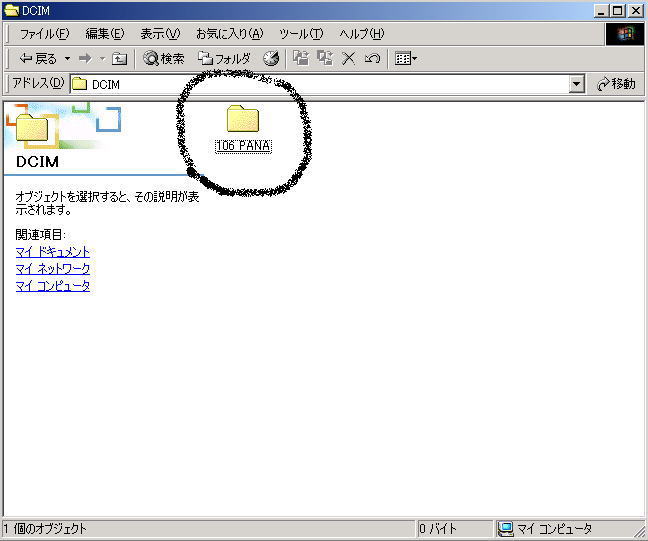 リムーバブルが開いたら、画像の入っているフォルダを探す。画面ではDCIMフォルダ。カメラのメーカーで異なる。