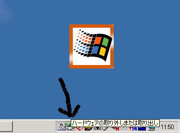 ディスクトップの右下タスクトレイの中の「ハードウエアの取り外しまたは取り出し」